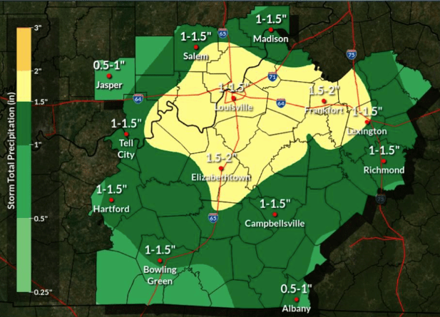 La baja presión hacia nuestro este continuará canalizándose en bolsas de aguaceros y tormentas eléctricas durante el día. El movimiento de la lluvia será del este en lugar del sur o el oeste. Las cantidades de lluvia deberían ser más ligeras en comparación con la lluvia del lunes.