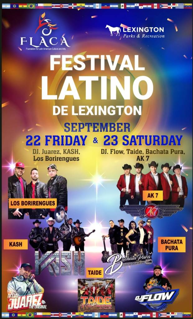 El evento es gratis y es una buena oportunidad para explorar y disfrutar durante este evento de dos días. La noche del viernes es noche tropical e incluirá auténtica comida latina, música en vivo y baile. El festival es presentado por Lexington Parks & Recreation y la Fundación para la Cultura y las Artes Latinoamericanas y Latinas.