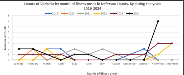 El Departamento de Salud Pública y Bienestar de Louisville Metro (LMPHW) está observando un aumento en los casos probables y confirmados de varicela. En lo que va del año, se han reportado 14 casos, siete de ellos en noviembre. Todos los casos se han dado en personas que no estaban vacunadas o que eran demasiado jóvenes para ser vacunadas.