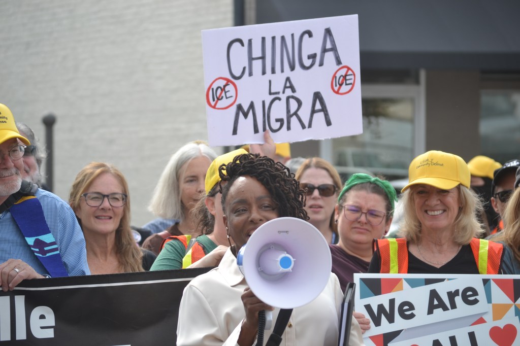 «La gente de Louisville se está uniendo para defender a nuestros vecinos inmigrantes», declaró Carla F. Wallace, de LSURJ. «No podemos permitir que nos ataquen a ninguno sin que nos ayuden todos».