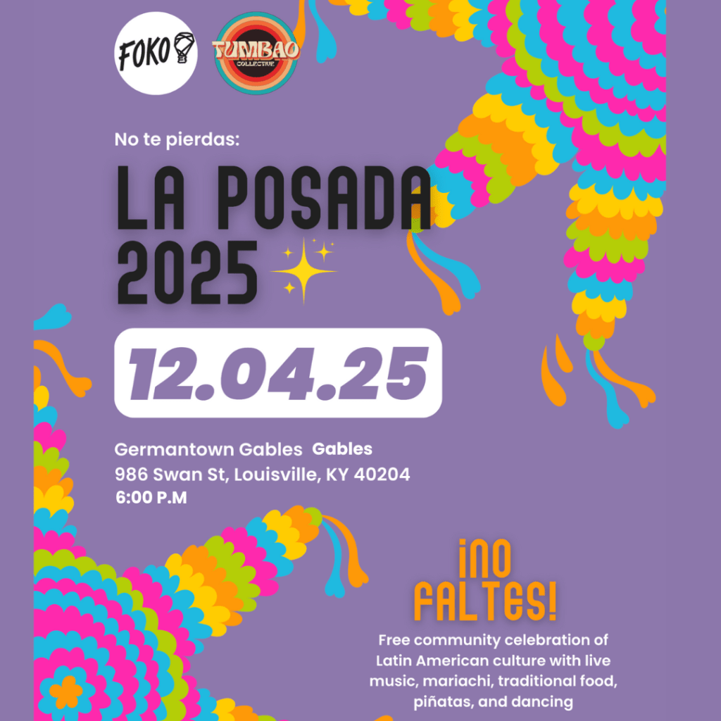 Los principales organizadores de este evento lo encabeza FOKO, Tumbao Collective y La Pana, ellos planean iniciar la fiesta de La Posada 2025 el próximo jueves 4 de diciembre de 2025 en el Germantown Gables ubicado en 986 Swan St. Louisville KY 40204. Esta vibrante celebración de la cultura latinoamericana invita a la comunidad a disfrutar de presentaciones a partir de las 6 de la tarde.