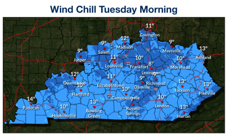 El lunes por la tarde tendremos un clima más seco y frío, ya que las temperaturas continuarán bajando a 23 grados Fahrenheit durante todo el día.